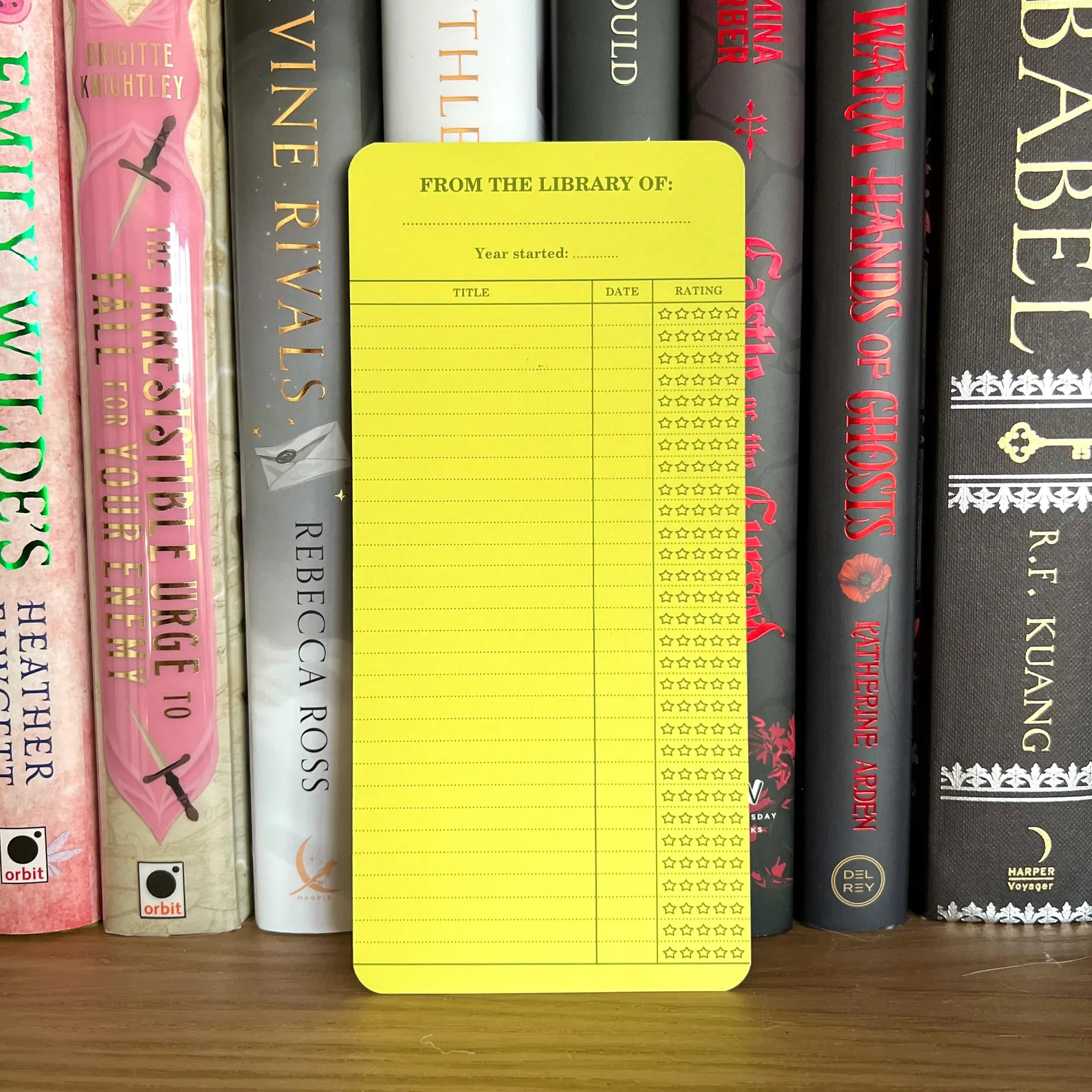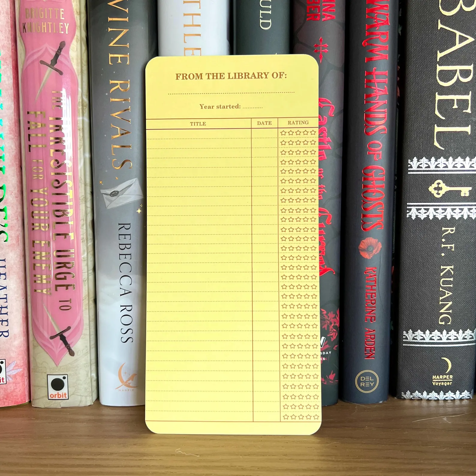 Plongez dans une ambiance rétro et littéraire avec ce marque-page inspiré des anciennes cartes de bibliothèque 📖. Parfait pour les amoureux de lecture, ce joli accessoire vous permet de noter vos lectures et leur attribuer une note sur 5 étoiles, directement sur votre marque-page !